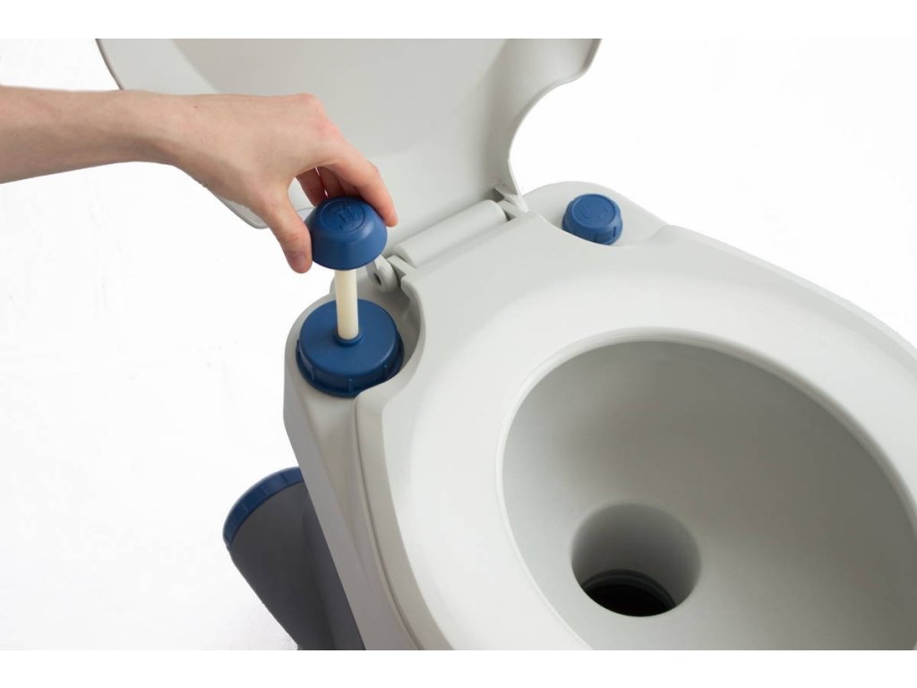 O obsluhu se stará pístové čerpadlo, konstrukce je stabilní a pro přenášení slouží integrovaná madla. Díky výšce sedáku 41 cm může být praktická i jako přenosné wc pro seniory v situacích, kdy je potřeba mít řešení po ruce.