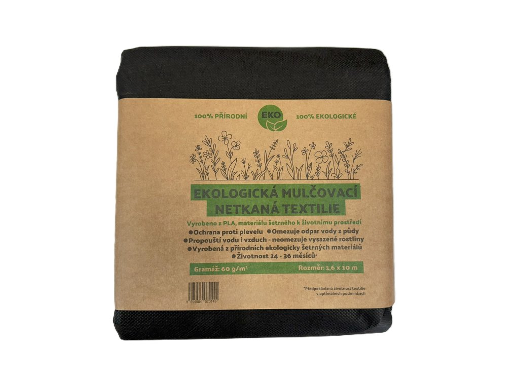 Netkaná textilie ECO PLA s gramáží 60 g/m² v černé barvě a rozměry 5 m x 1,6 m je skvělým pomocníkem pro ochranu záhonů před plevelem a zajištění ideálních podmínek pro růst rostlin. Díky své struktuře umožňuje volný průchod vody i vzduchu, což pomáhá udržovat optimální vlhkost a teplotu půdy. Tato mulčovací fólie je vyrobena z přírodního PLA, je 100% biologicky rozložitelná a šetrná k životnímu prostředí. Usnadňuje péči o zahradu, minimalizuje potřebu pletí a je vhodná pro pěstování zeleniny, ovoce i okrasných rostlin. Naše ekotextilie je ideální volba pro každého, kdo hledá ekologické a efektivní řešení.