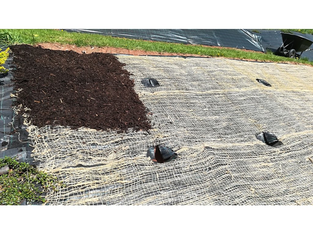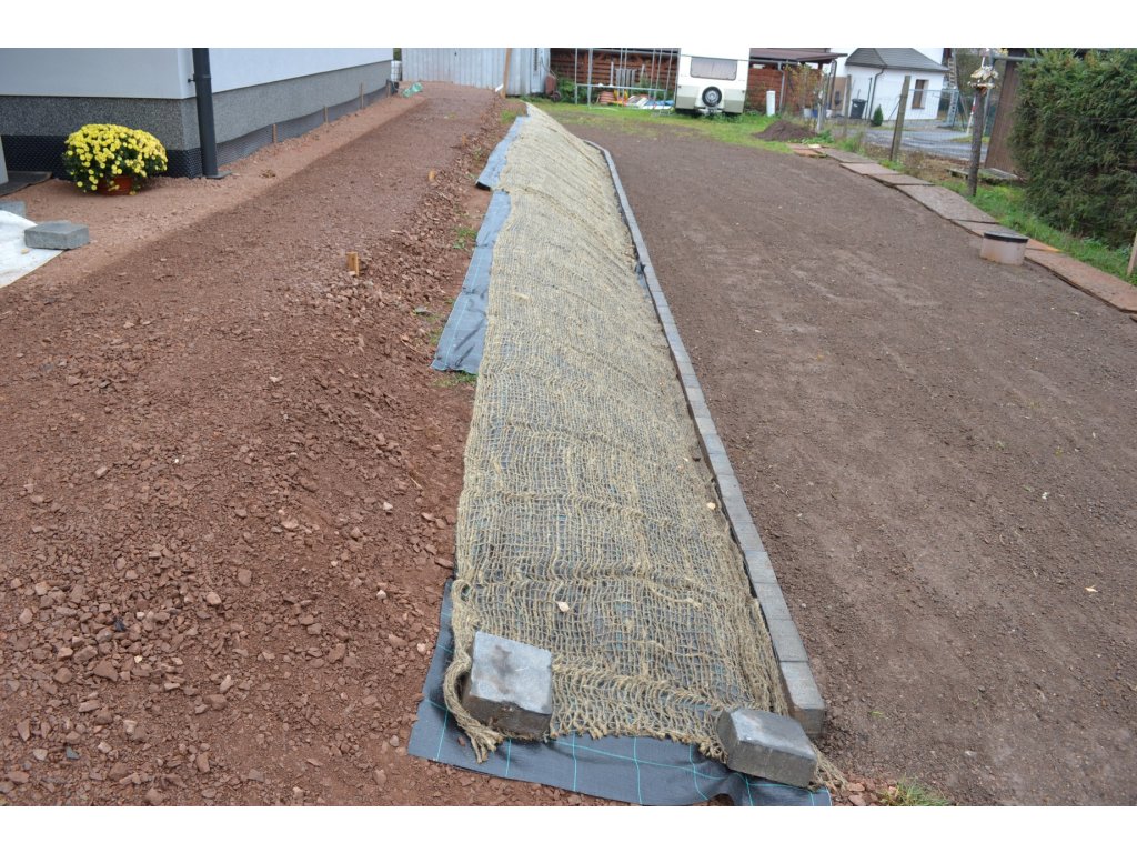 Jutové sítě a kokosové sítě jsou ideální pro integraci členitých pozemků a zahradních úprav, zejména v okolí nových staveb nebo při zakládání okrasné zahrady. Tyto přírodní protierozní sítě účinně chrání nově zasetou vegetaci před vyplavením deštěm a zároveň poskytují optimální podmínky pro její růst, čímž předcházejí půdní erozi. S časem se tato jutová rohož nebo kokosová rohož plně integrují do půdy. Protierozní síť Jutenon lze také efektivně využít na svažitých a kopcovitých terénech při vytváření skalek nebo jiných okrasných záhonů. Po jejich umístění a upevnění na tkané textílii AGROJUTEX či netkané mulčovací textilii s použitím ocelových kotvících skob lze následně aplikovat mulčovací kůru, což zabrání jejímu sjíždění ze svahu.
