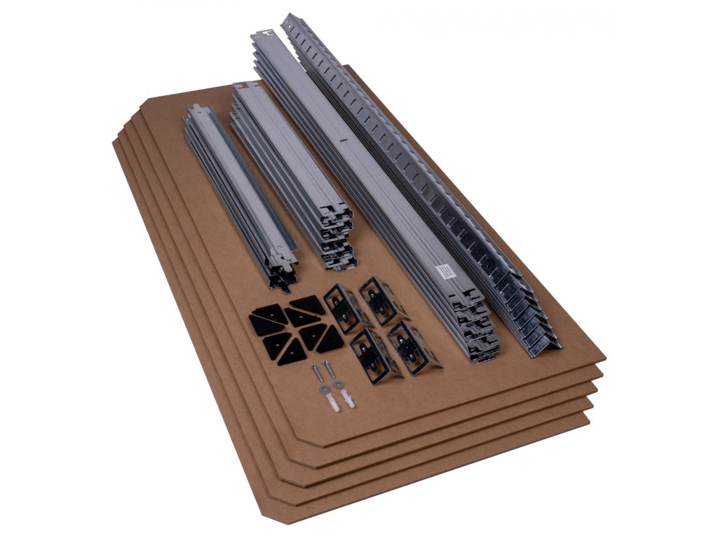 - Montáž: Bez šroubů, rychlá a jednoduchá, bez nutnosti použití nářadí (doporučeno gumové kladivo)