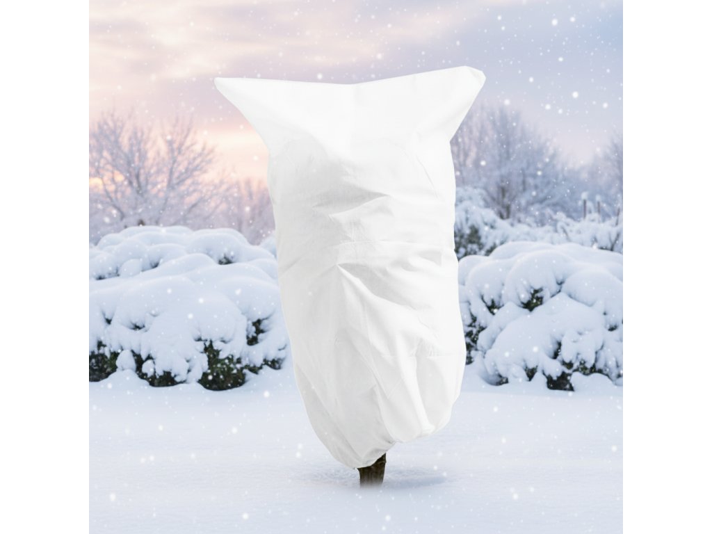 Textilní vak - ochranný návlek proti mrazu 80 x 110 cm je nepostradatelným pomocníkem do vaší zahrady pro ochranu rostlin proti mrazu na podzim, v zimě i na jaře. Jeho odolný materiál 50 g s UV ochranou chrání keře a rostliny před nepříznivými vlivy prostředí, jako je chlad, mráz, krupobití, extrémní sluneční svit a nárazy větru. Zároveň tato ochrana proti mrazu chrání rostliny a keře před létajícími škůdci a okusem divokou zvěří.