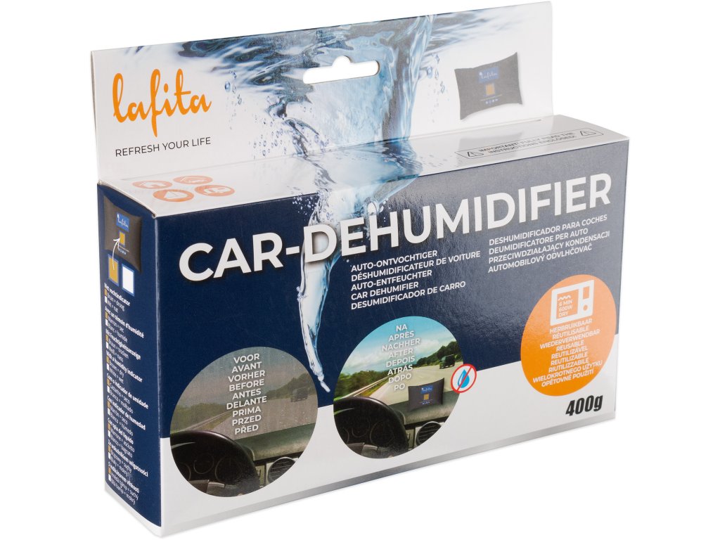 - Určení: pohlcovač vlhkosti do auta (hodí se i do domácnosti – např. do šatny nebo spíže – a také do karavanu či málo větraných prostor)