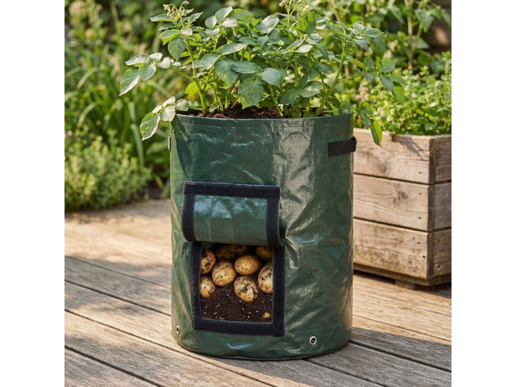Pytel na pěstování brambor o objemu 43L s průměrem 35 cm a výškou 45 cm je perfektní volbou pro pěstování brambor v pytli i dalších plodin, jako jsou rajčata, papriky nebo bylinky. Vyroben z odolného PE materiálu (160 g/m²) s UV ochranou, což zajišťuje dlouhou životnost. Drenážní otvory regulují vlhkost půdy, zatímco zesílená madla usnadňují manipulaci. Tento pěstební vak umožňuje efektivní domácí pěstování i v menších prostorech, jako jsou balkony, terasy či zahrady.