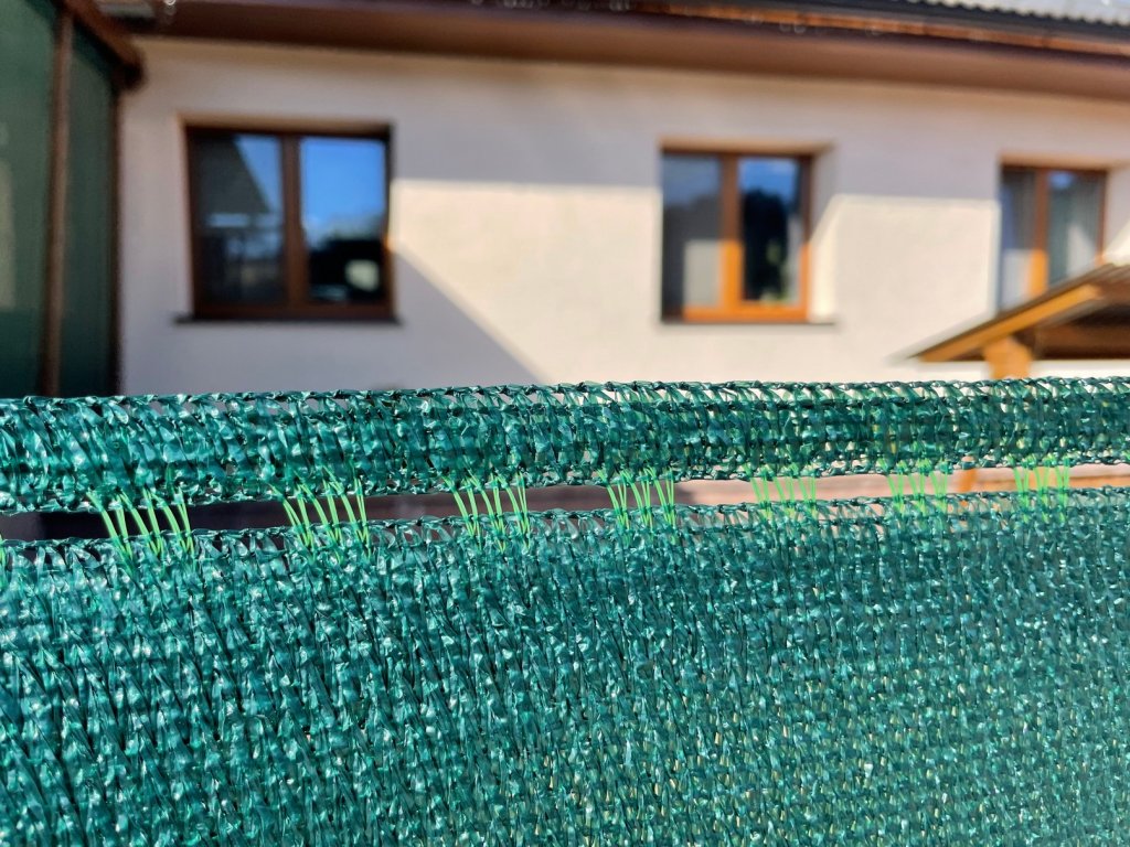 Naše stínící tkanina - rašlový úplet 100%, vhodná také jako stínící plachta nebo zástěna na plot, zajišťuje kompletní zastínění a dokonalou ochranu vašeho soukromí. Tato vysoce kvalitní stínící síť, dostupná v přirozených zelených a antracitových odstínech, je vyrobena z HDPE materiálu s UV ochranou, což zaručuje vynikající odolnost vůči slunečnímu záření a větru. S gramáží 200 g/m² poskytne naše stínící plachta dokonalé soukromí a navíc také chrání před náletem plevele a prachu. Díky praktickým vypleteným otvorům na horní a dolní straně úpletu je montáž jednoduchá, ať už s použitím plastových stahovacích pásek nebo vázacího drátu z naší nabídky.