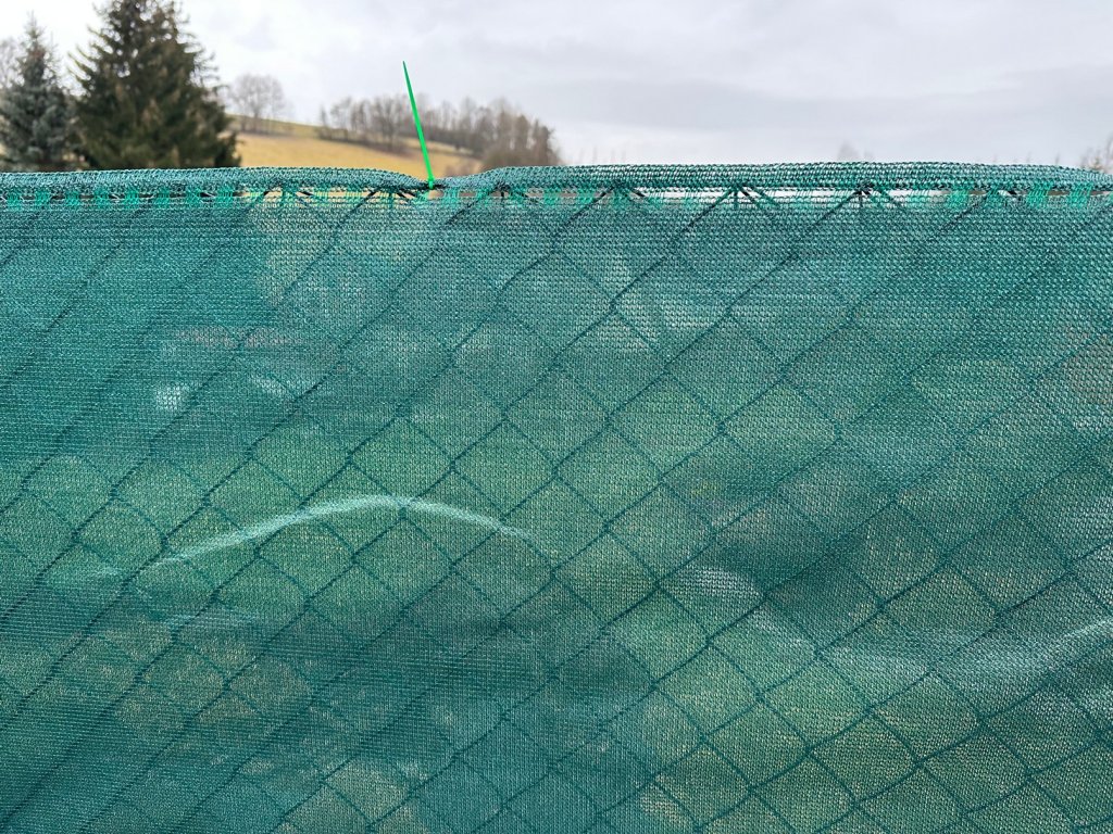 Kvalitní, pevná a odolná síť - stínící tkanina. Vlákno této stínící sítě je vyrobeno z prvotřídních polymerů HDPE s vysokou UV ochranou. Díky hustému tkaní dosahuje tato stínící plachta zastínění 92% i více a to při gramáži 150g/m2.