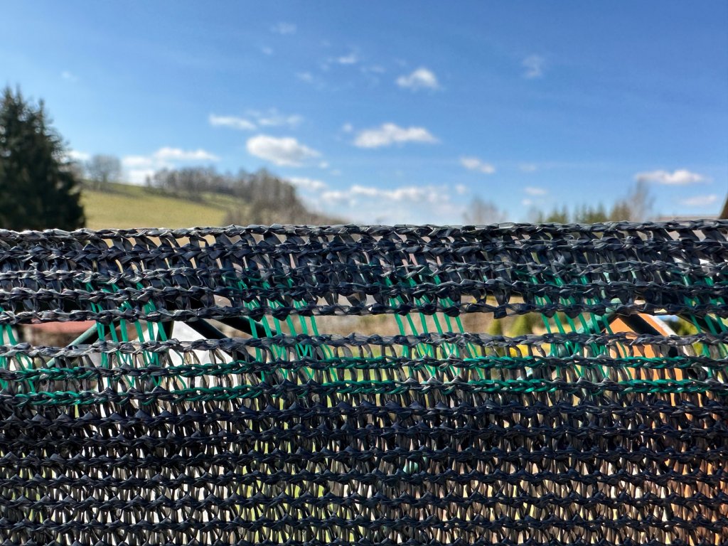 Kvalitní, pevná a odolná síť - stínící tkanina. Vlákno této stínící sítě je vyrobeno z prvotřídních polymerů HDPE s vysokou UV ochranou. Díky hustému tkaní dosahuje tato stínící plachta zastínění 92% i více a to při gramáži 150g/m2.
