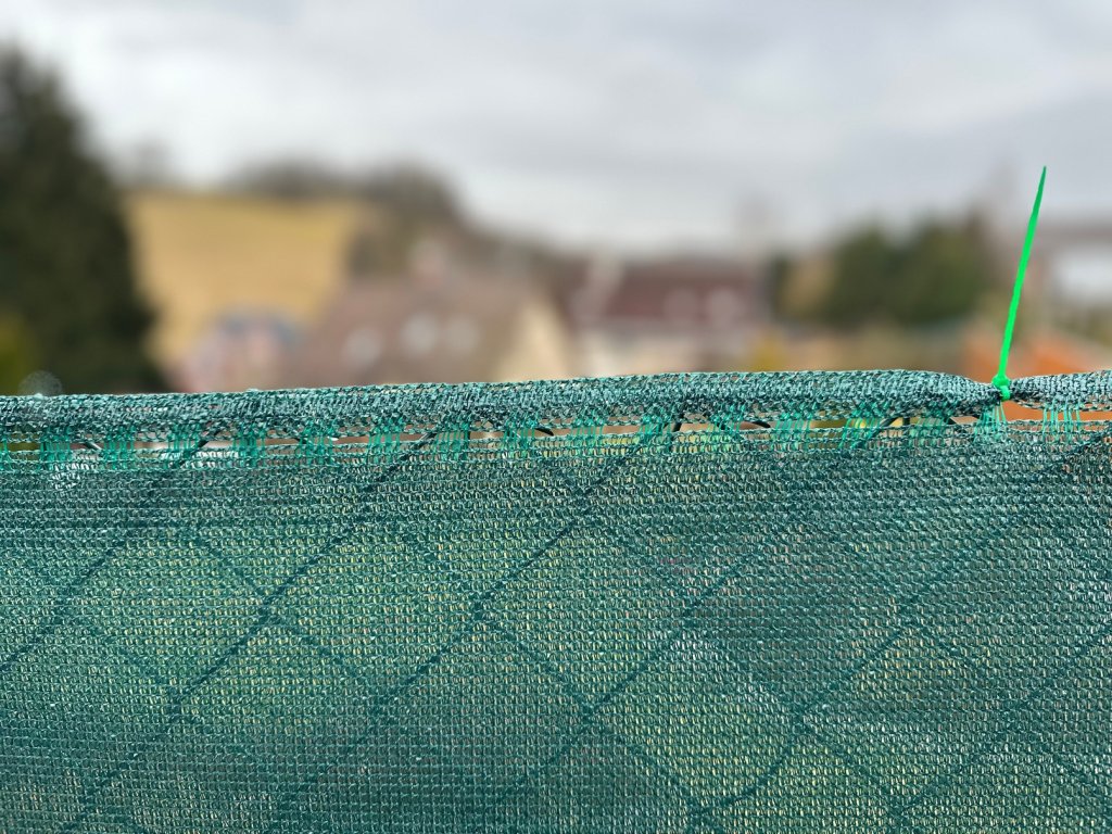 Kvalitní, pevná a odolná síť - stínící tkanina. Vlákno této stínící sítě je vyrobeno z prvotřídních polymerů HDPE s vysokou UV ochranou. Díky hustému tkaní dosahuje tato stínící plachta zastínění 92% i více a to při gramáži 150g/m2.
