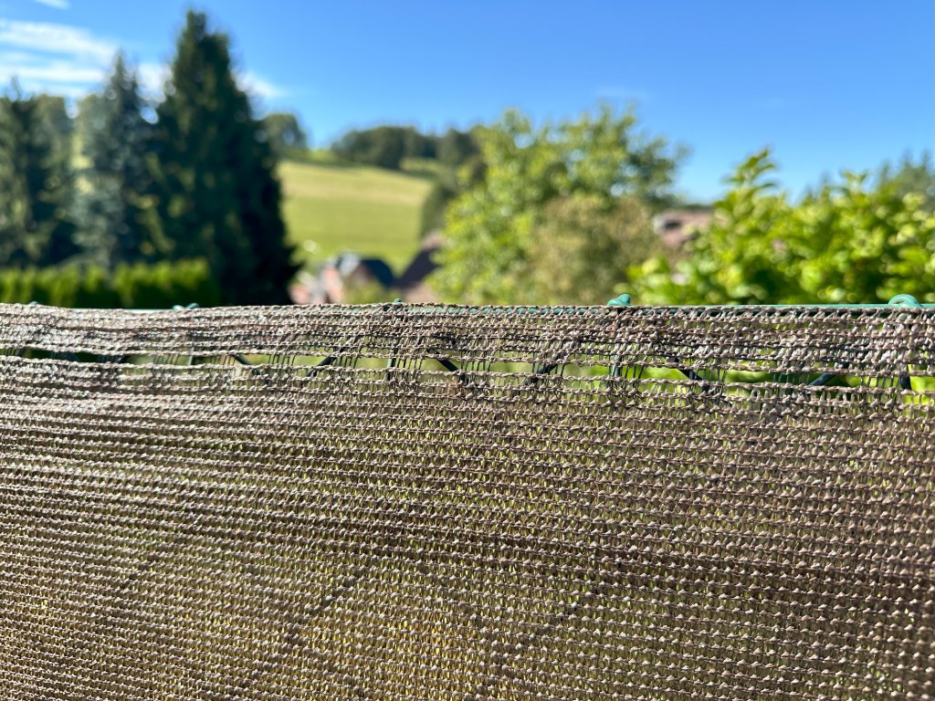 Kvalitní, pevná a odolná síť - stínící tkanina. Vlákno této stínící sítě je vyrobeno z prvotřídních polymerů HDPE s vysokou UV ochranou. Díky hustému tkaní dosahuje tato stínící plachta zastínění 92% i více a to při gramáži 150g/m2.