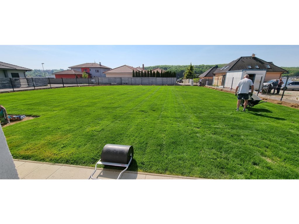 Poprvé travní koberec sečeme o cca 1/3 délky, když výška trávy dosáhne cca 10 cm. Sečení trávníkového koberce, přihnojování a celkovou péči o dokonalý trávník dále provádíme jako při jiných způsobech zatravnění.