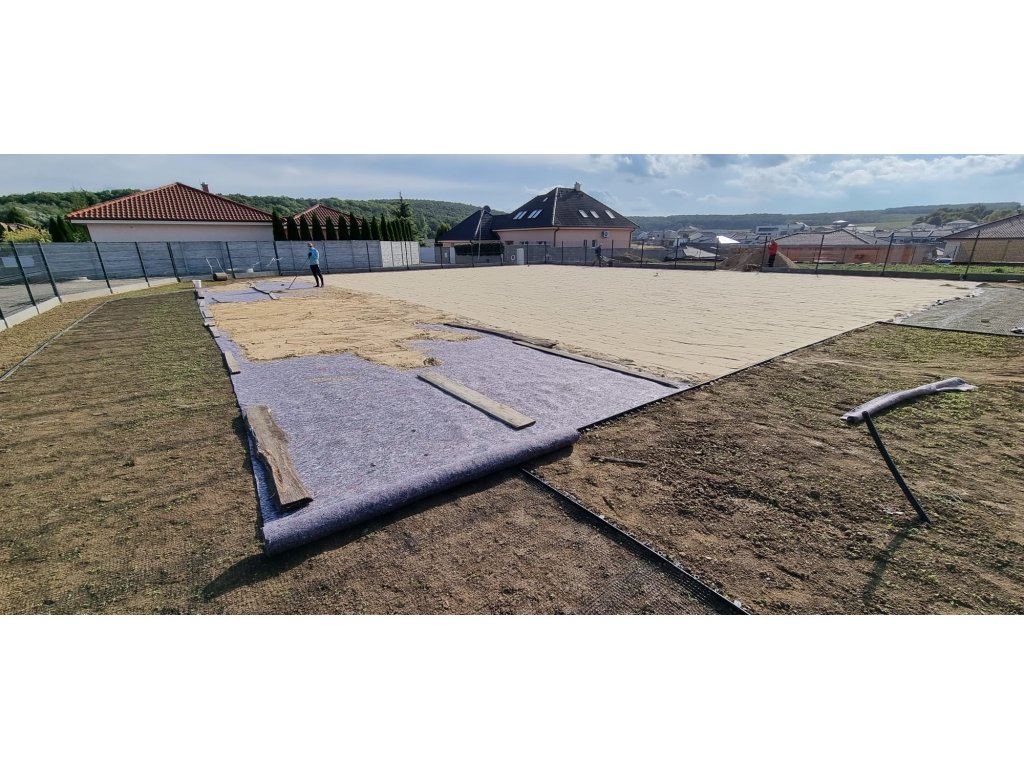 Rozložitelnou geotextilii zajistěte proti posunutí dle potřeby např. ocelovými skobami nebo plastovými kolíky, přihrnutí geotextilie vrstvou zeminy nebo písku tl. 1-2 cm. Během klíčení osiva je třeba plochu pravidelně a vydatně zalévat, aby neproschla.