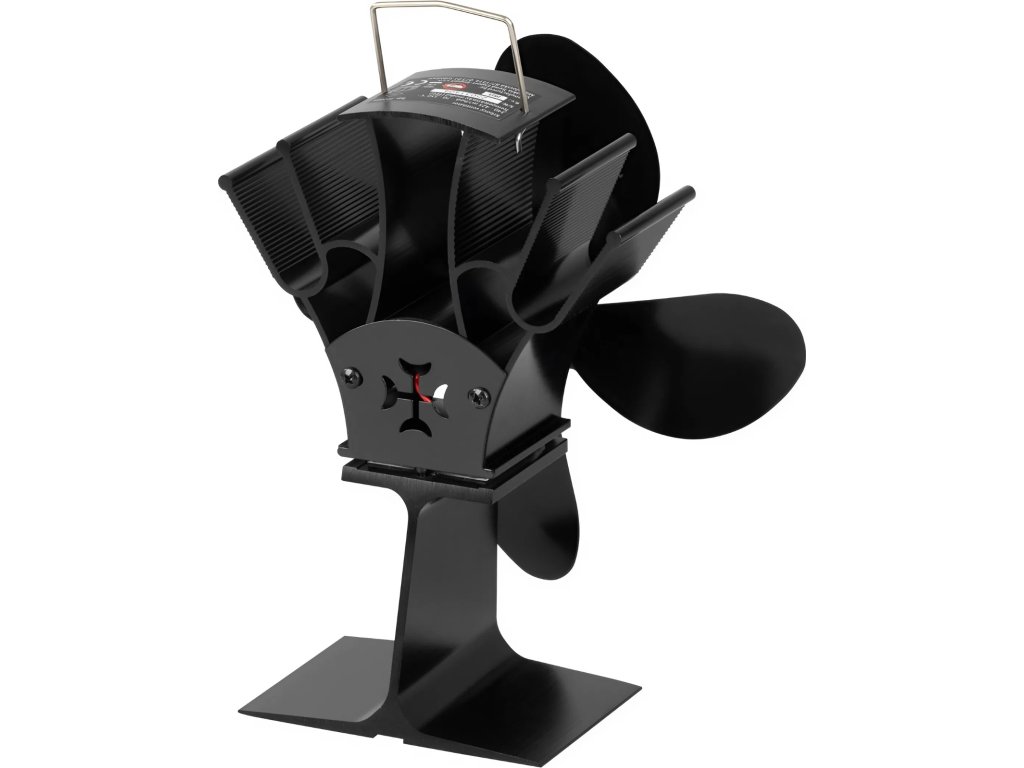 Ventilátor na kamna – krbový ventilátor poháněný teplem s 4 lopatkami (18 cm) efektivně rozptyluje teplo z kachlových kamen nebo krbových vložek bez potřeby elektrického napájení. Díky termoelektrickému pohonu a automatickému spuštění při teplotě 70–350 °C (optimálně 80–250 °C) šetří palivo a zvyšuje komfort vytápění. Černý design z eloxovaného hliníku odolává vysokým teplotám. Ventilátor na krbová kamna nejen zvyšuje účinnost vytápění, ale díky modernímu designu také perfektně doplní každý interiér.
