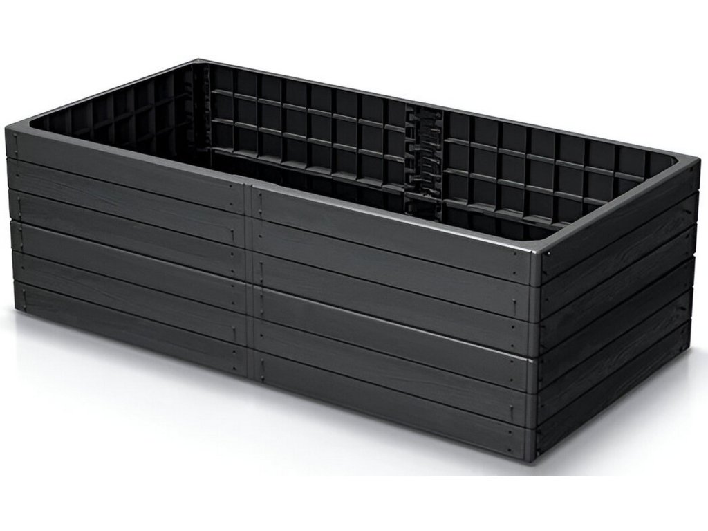 Vyvýšený záhon z plastu BASE WOODY antracit: Stylový a praktický doplněk pro vaši zahradu, terasu i balkon